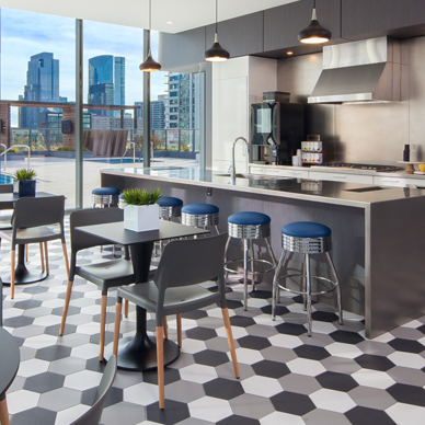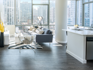 North Wells is an ultra-luxury Chicago River North high-rise apartment. It is furnished with 300,000 square feet of luxury vinyl wood flooring and custom tiles. Ecosmart developed custom colors for finish coordination with the design team.